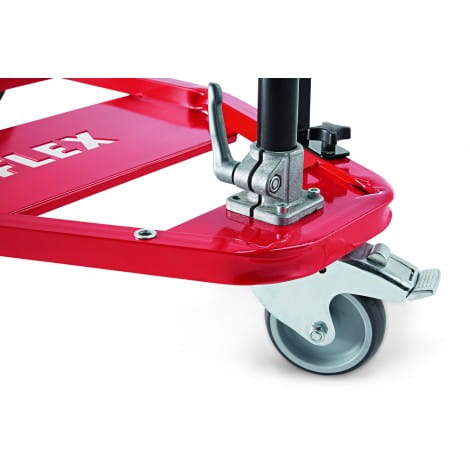 - Mobilne stanowisko pracy wyposażone jest w stabilną ramę do solidnego użycia na budowach. Hamowana rolka jezdna o optymalnej właściwości eksploatacyjnej, zapewnia dokładność i łatwość manewrowania. Z płytą podłogową o optymalnym ciężarze na odkurzacz przemysłowy FLEX do niebezpiecznych pyłów