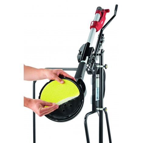 - Szybka zmiana szlifierki Giraffe bez użycia narzędzi poprzez zamocowanie w stabilnym uchwycie narzędzia. Jak również zmiana nastawienia wysokości pracy bez użycia narzędzi poprzez 2-krotny zatrzask wysuwanego drążka rękojeści