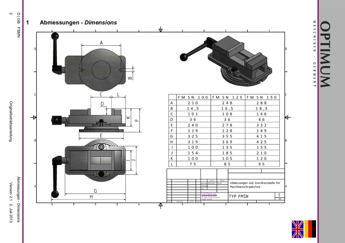 Optimum FMSN 100 - Precyzyjne imadło maszynowe
