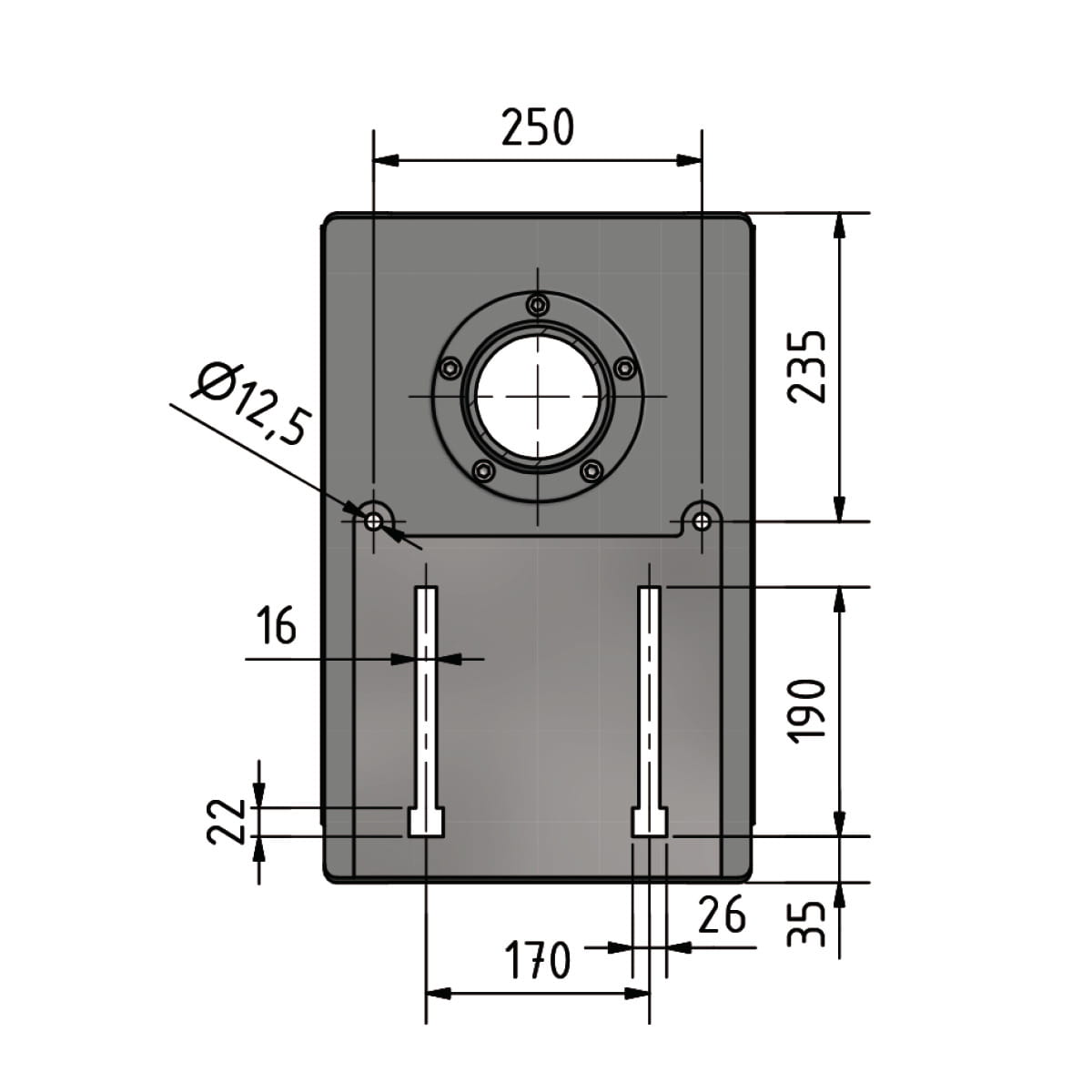 - T-sloty podstawy maszyny Odległość: 170mm