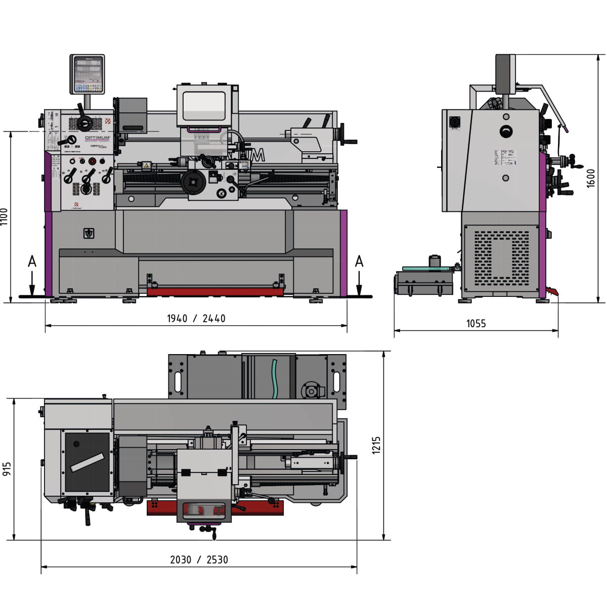 OPTIturn TH 4215D - Tokarka do metalu z cyfrowym wskaźnikiem położenia DPA 21