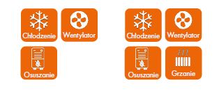 • Różne tryby: Możliwe chłodzenie, wentylacja i osuszanie